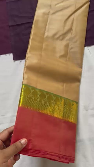 Colours: Golden body, peachish orange and green border, Pallu and blouse