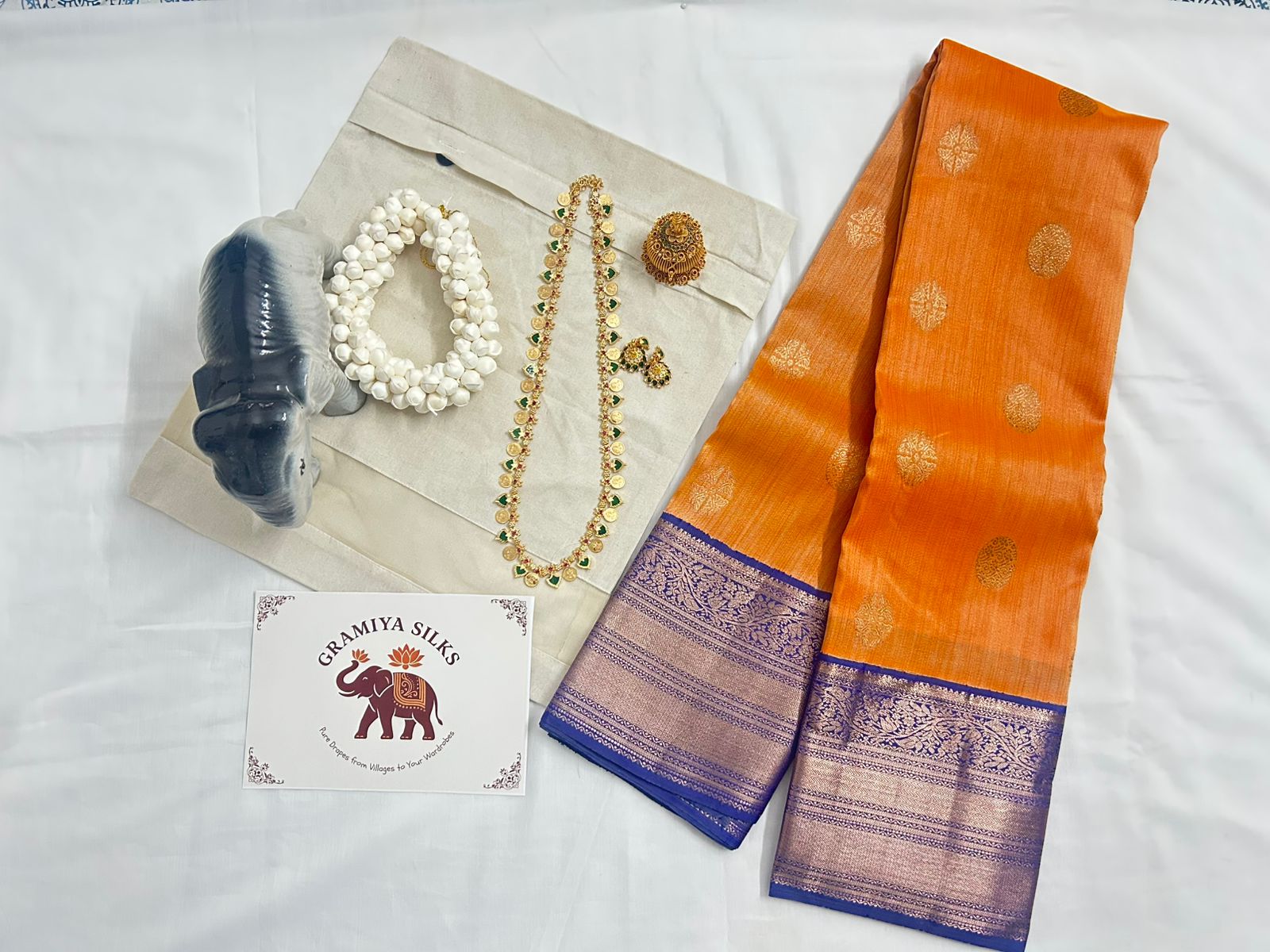 Timeless, Pure, Ethereal Tissue orange pastel shade saree woven in silk to give a modern yet traditional twist.