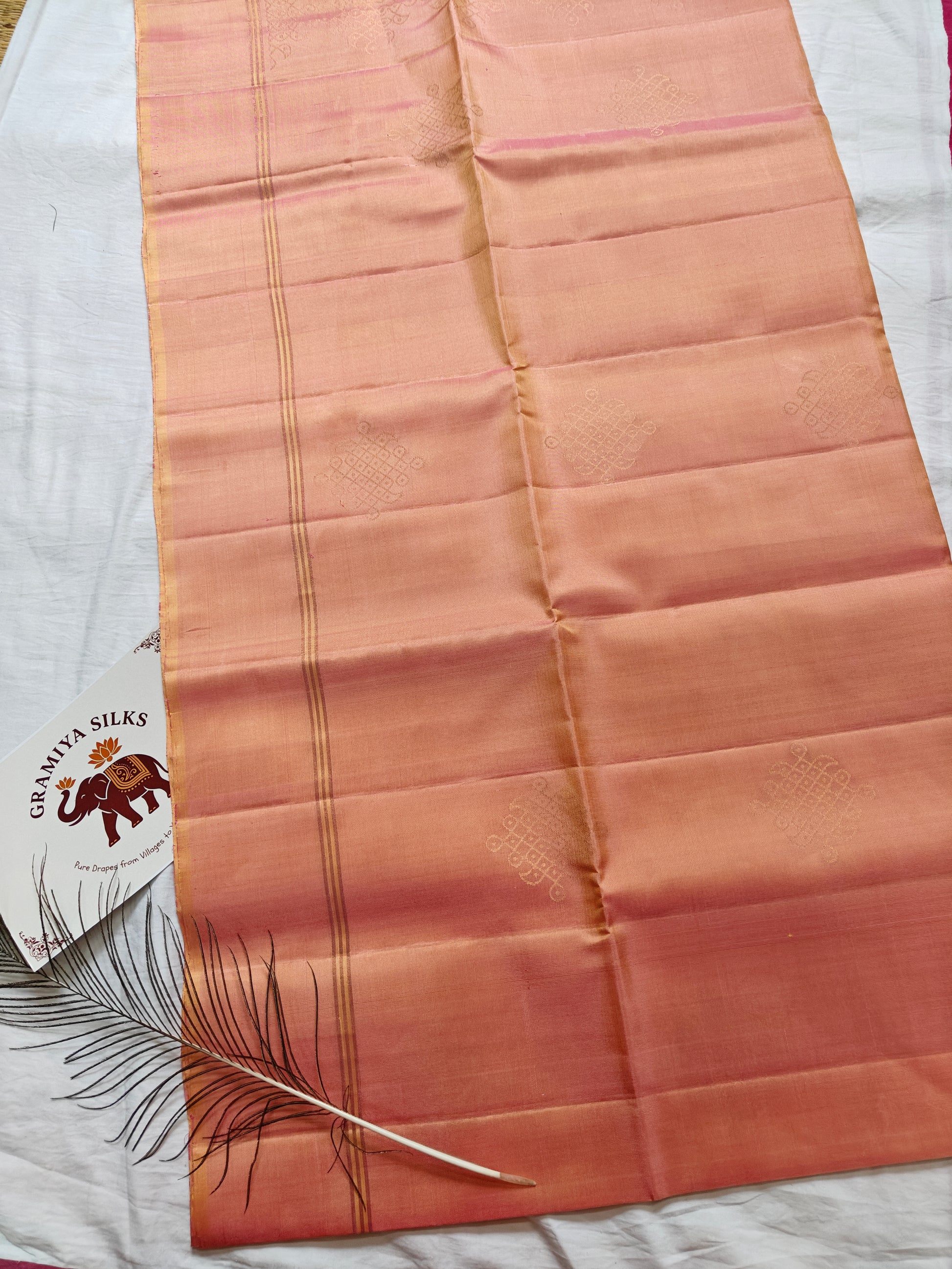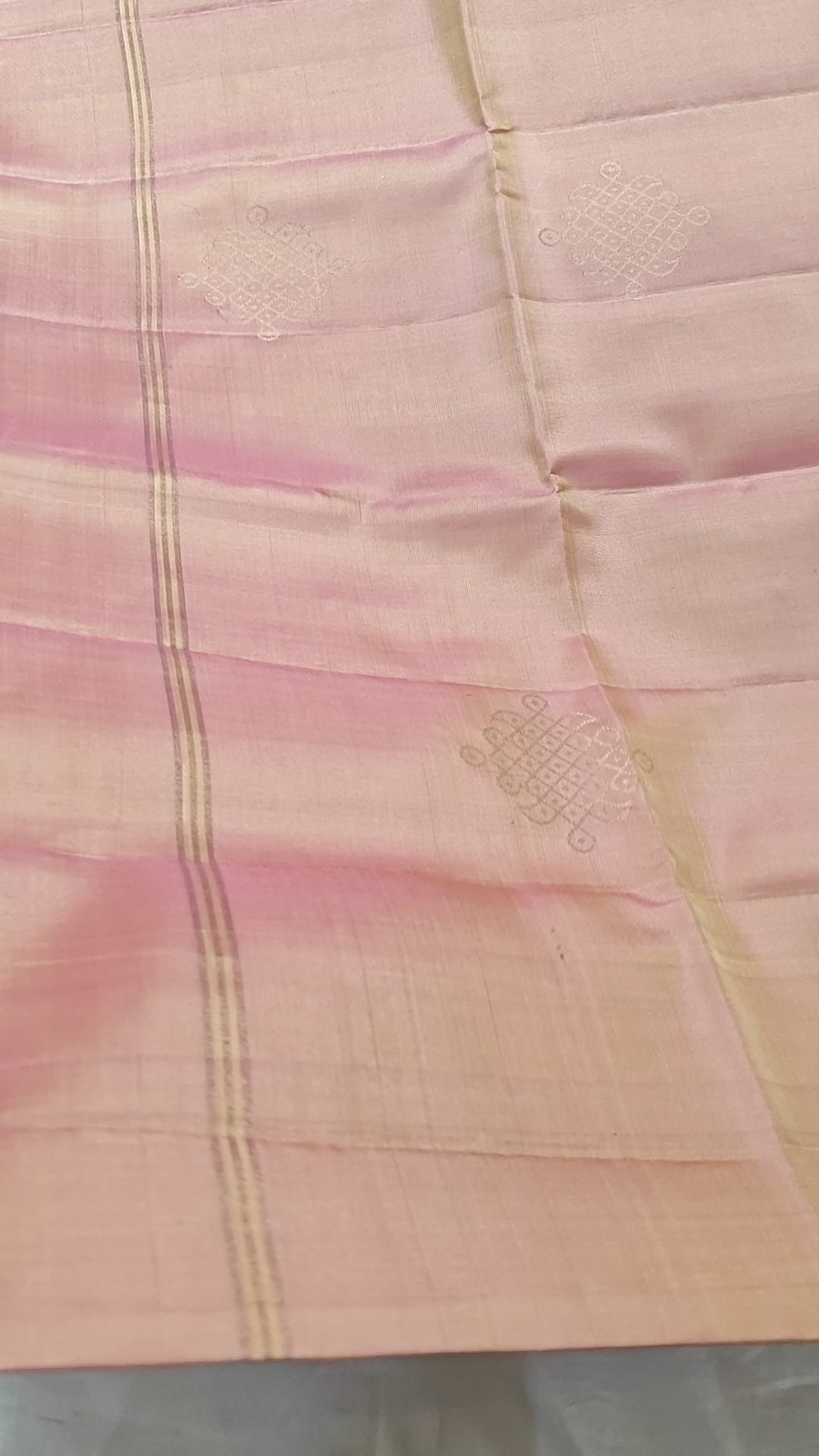 Colours: Pastel pink (Jyotika colour) kolam Motifs all over body, Pallu & plain pastel pink blouse