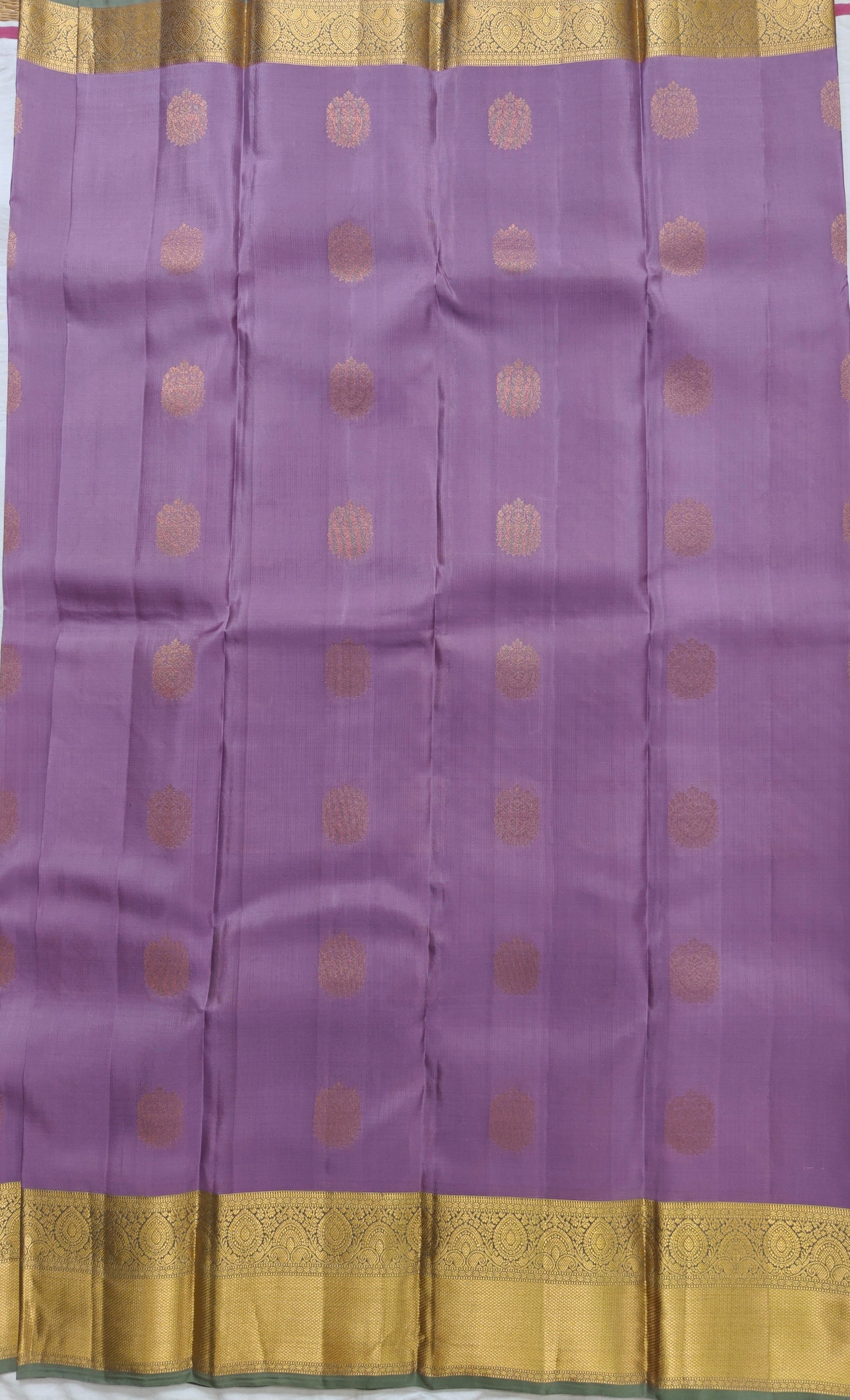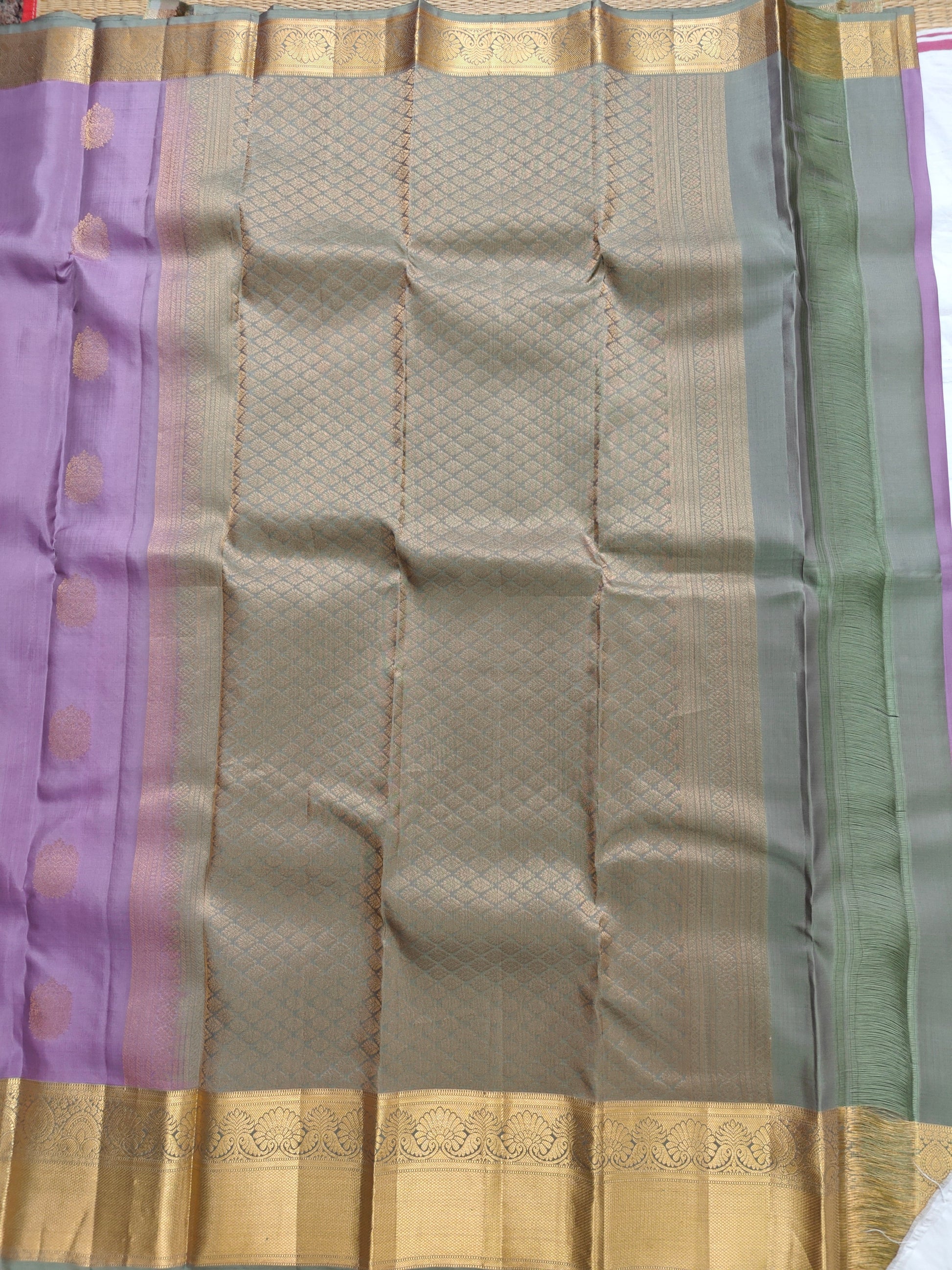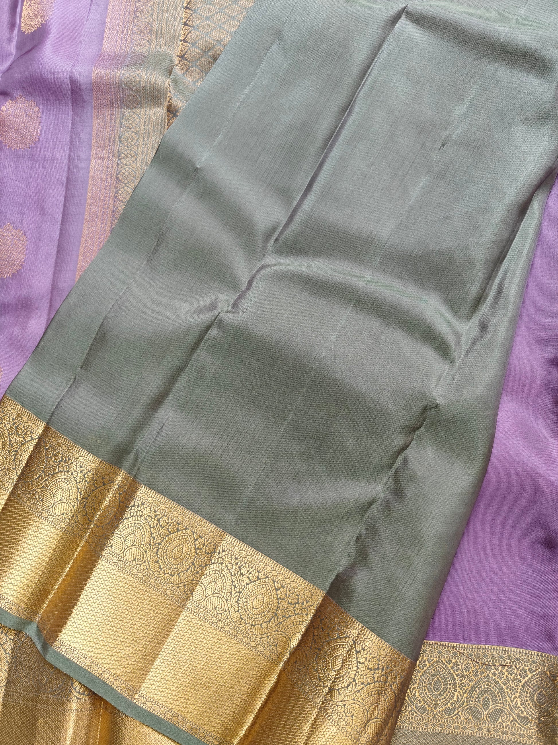 Colours: Lavender Body, Pastel Green border, Rich pallu & blouse