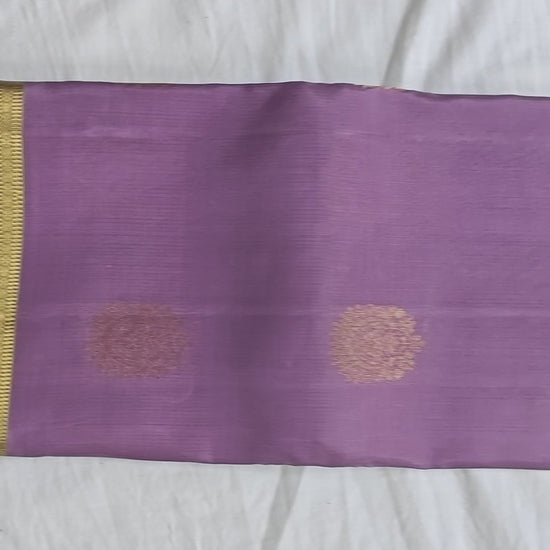 This silk saree is a serene blend of colors, with a gentle lavender body that evokes a sense of calm and grace. It's elegantly paired with a delicate pastel green contrast, creating a soft, ethereal look.