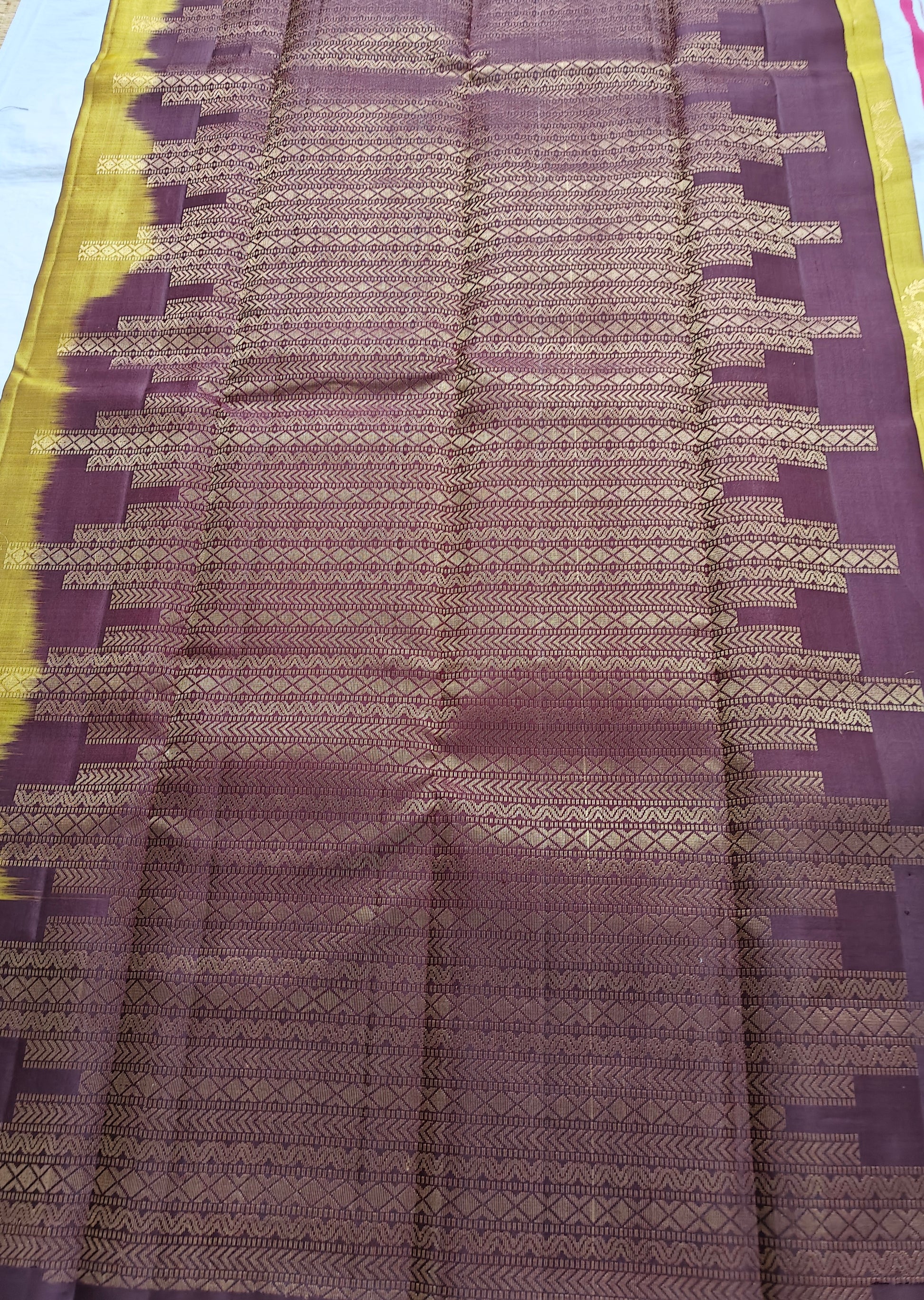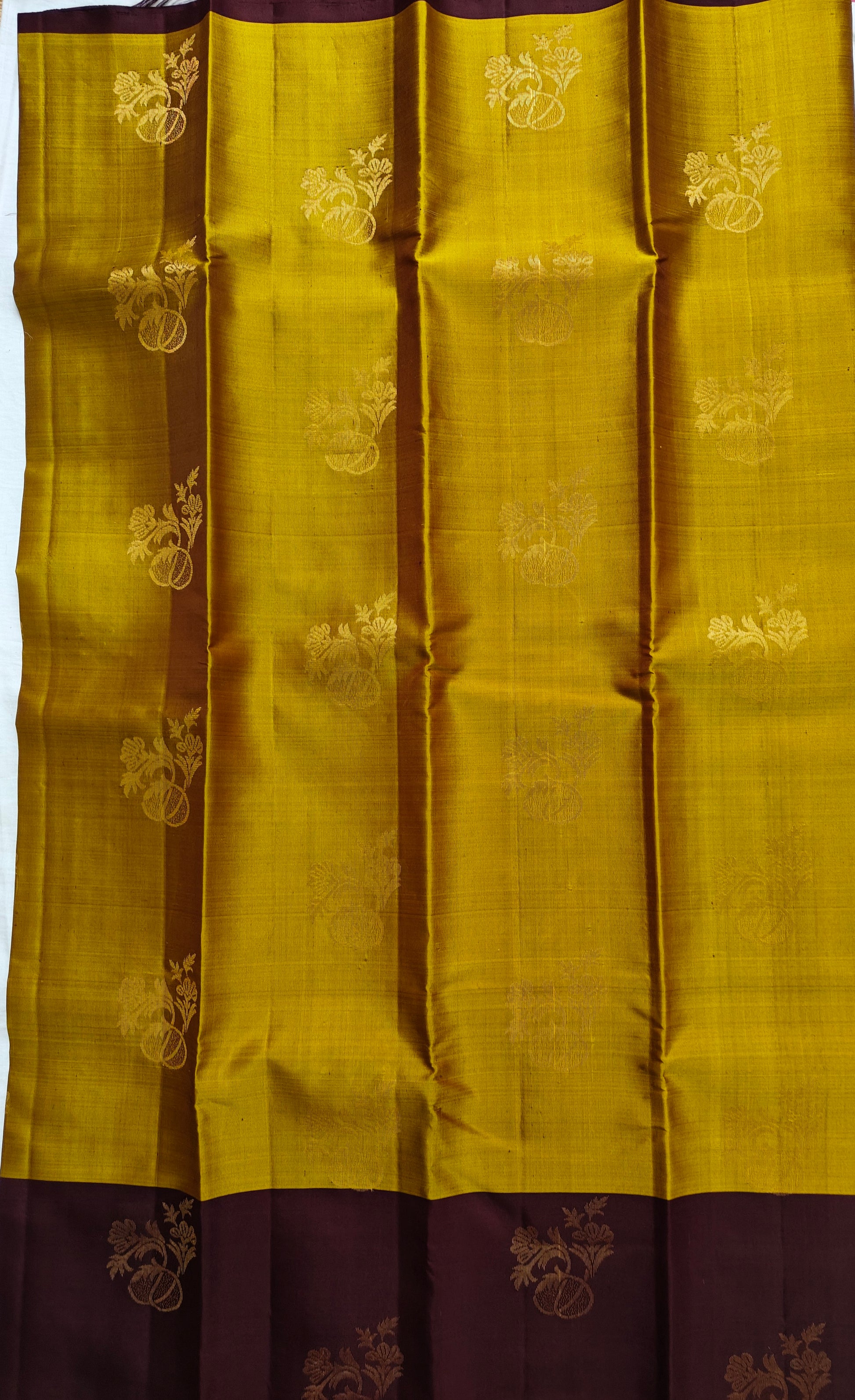 Colours: Golden body, deep maroon border, rich pallu & blouse
