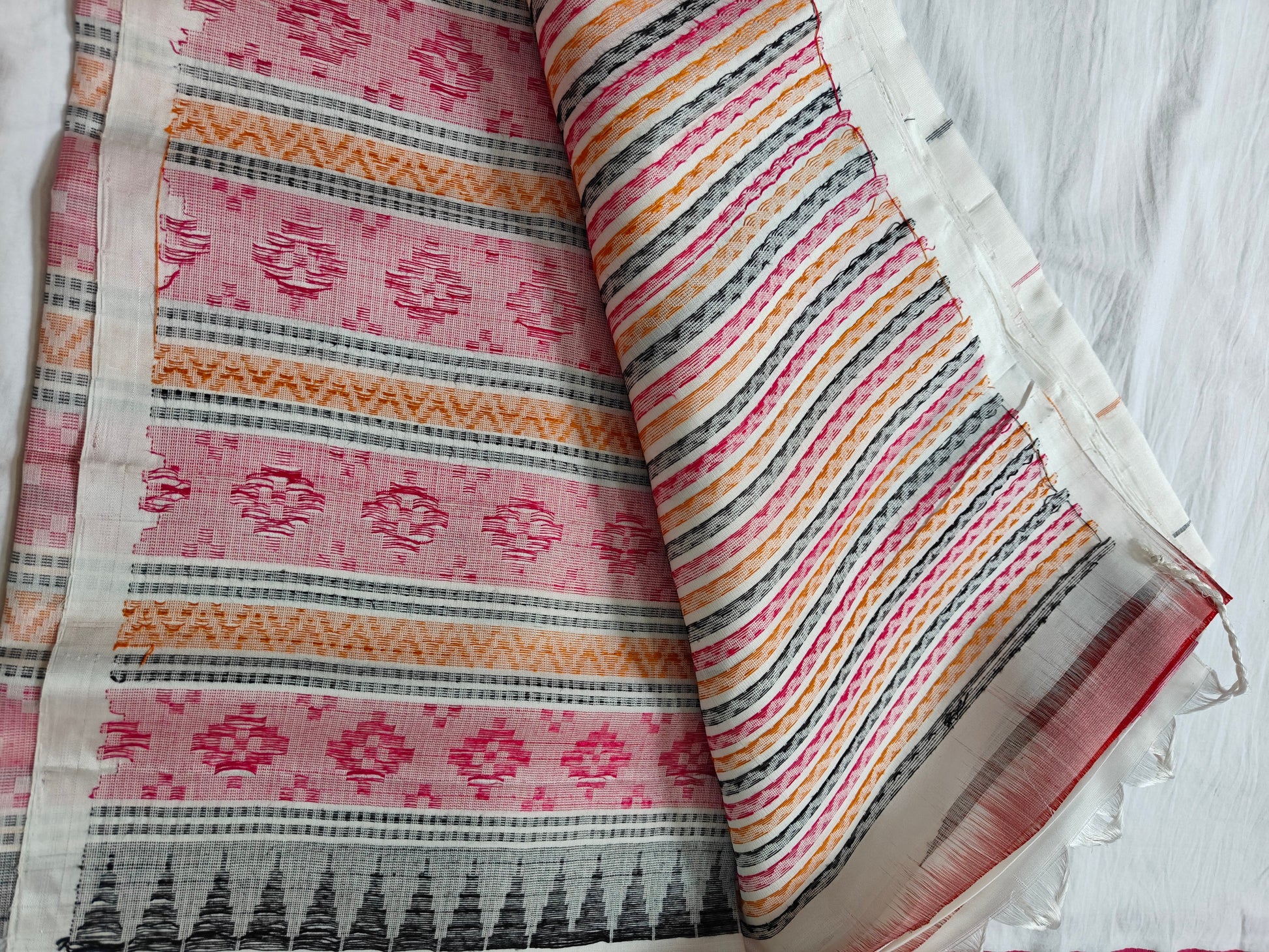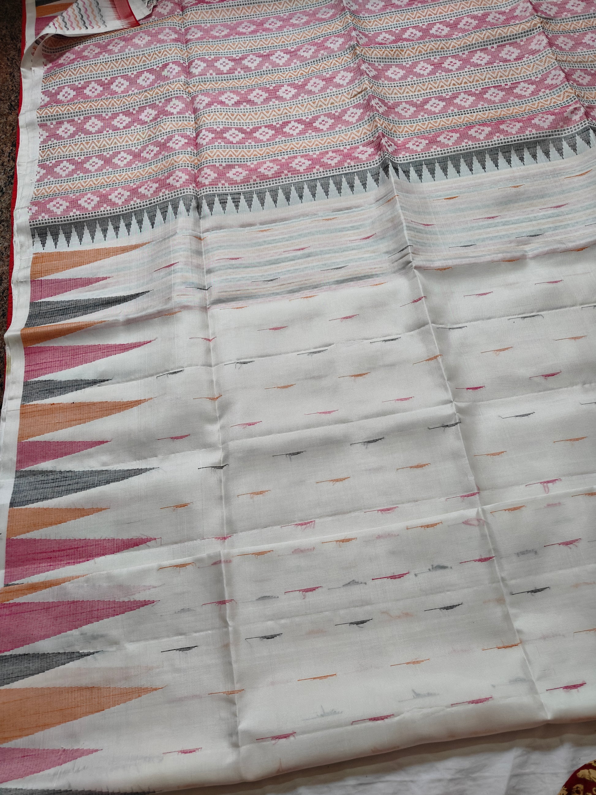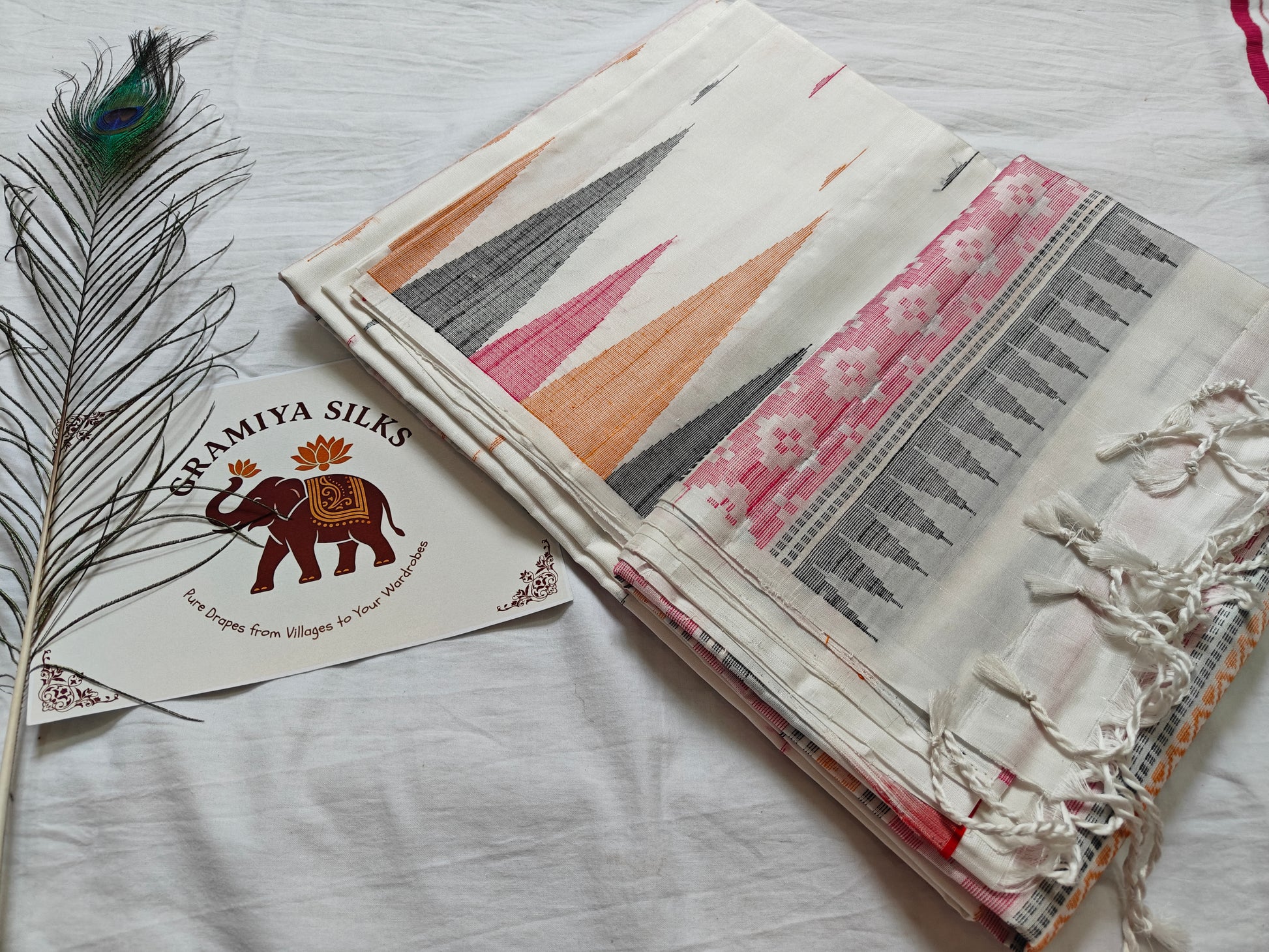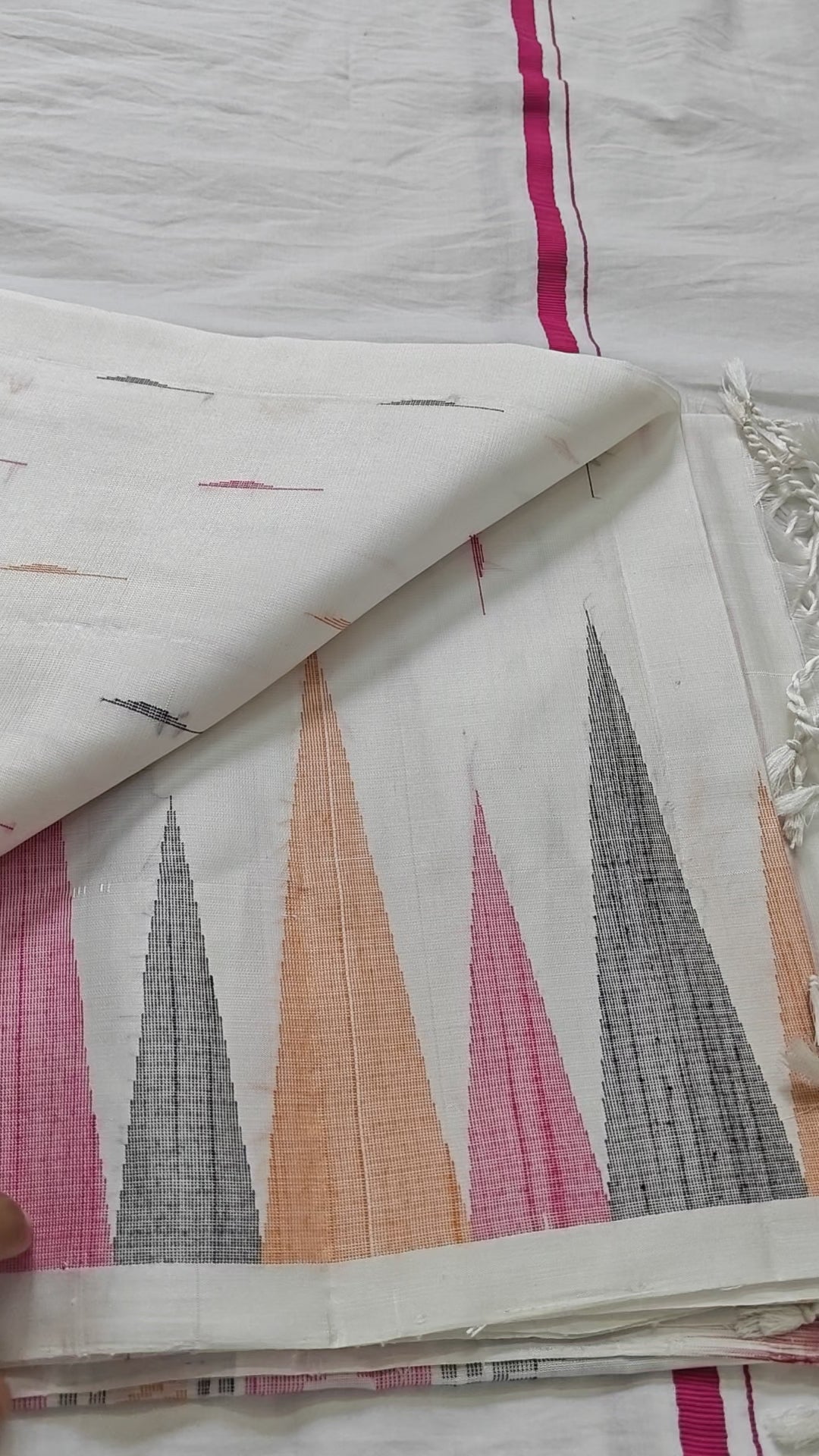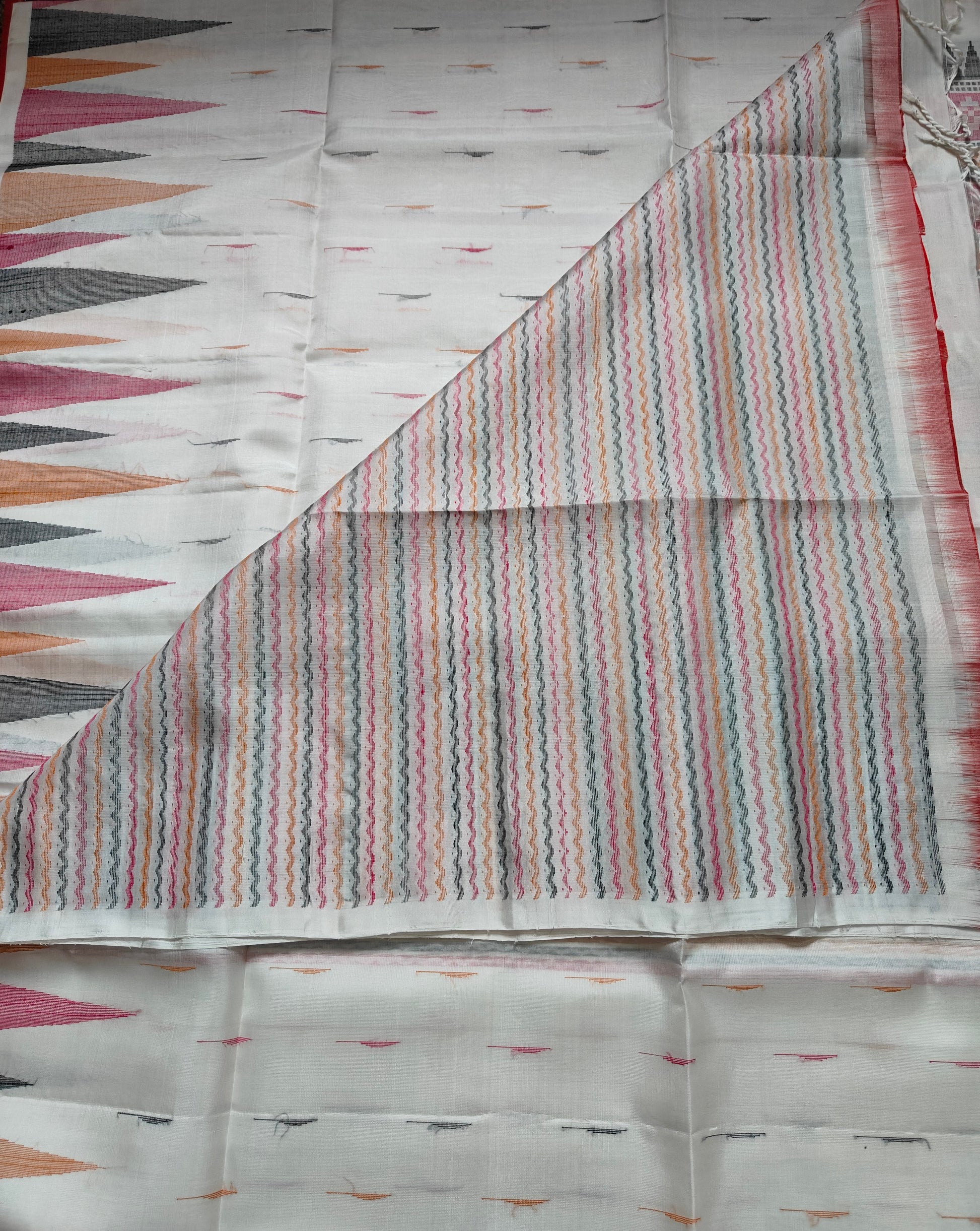 Colours: white Soft silk saree, Silk thread woven temple border, needle motifs, rich thread woven pallu, & stripe thread work blouse